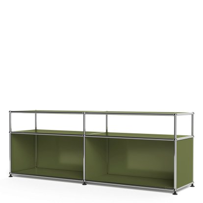 USM Haller Lowboard L with Extension, Customisable, Olive green RAL 6003, Open, Without cable entry hole
