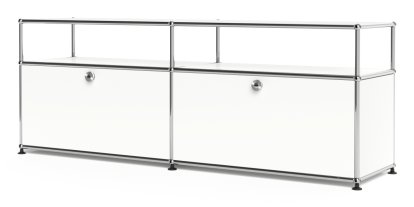 USM Haller Lowboard L with Extension, Customisable, Pure white RAL 9010, With 2 drop-down doors, With cable entry hole top centre