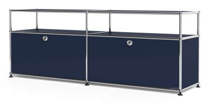 USM Haller Lowboard L with Extension, Customisable, Steel blue RAL 5011, With 2 extension doors, With cable entry hole top centre