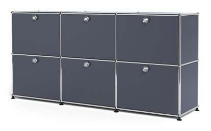 USM Haller Sideboard 50, Customisable, Anthracite RAL 7016, With 3 drop-down doors, With 3 drop-down doors