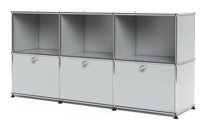 USM Haller Sideboard 50, Customisable, Light grey RAL 7035, Open, With 3 drop-down doors