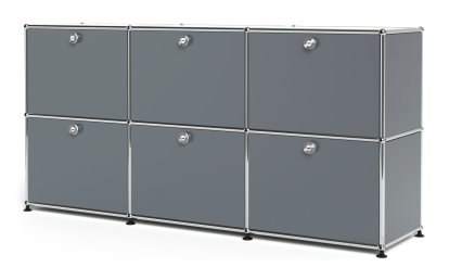 USM Haller Sideboard 50, Customisable, Mid grey RAL 7005, With 3 drop-down doors, With 3 drop-down doors