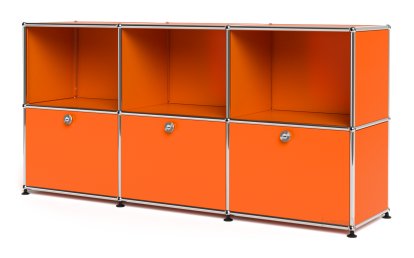 USM Haller Sideboard 50, Customisable, Pure orange RAL 2004, Open, With 3 drop-down doors