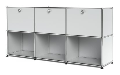 USM Haller Sideboard 50, Customisable, USM matte silver, With 3 drop-down doors, Open