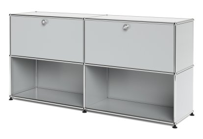 USM Haller Sideboard L, Customisable Light grey RAL 7035|With 2 drop-down doors|Open