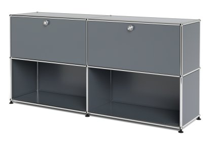 USM Haller Sideboard L, Customisable, Anthracite RAL 7016, With 2 drop-down doors, With 2 drop-down doors