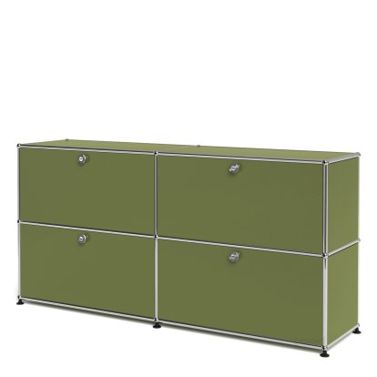 USM Haller Sideboard L, Customisable, Olive green RAL 6003, With 2 drop-down doors, With 2 drop-down doors