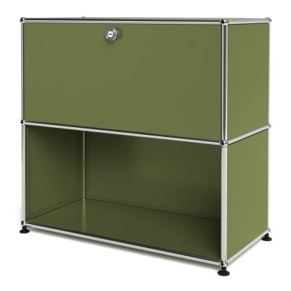 USM Haller Sideboard M, Customisable Olive green RAL 6003|With drop-down door|Open