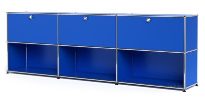 USM Haller Sideboard XL, Customisable Gentian blue RAL 5010|With 3 drop-down doors|Open