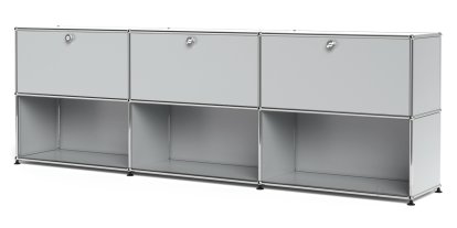 USM Haller Sideboard XL, Customisable Light grey RAL 7035|With 3 drop-down doors|Open