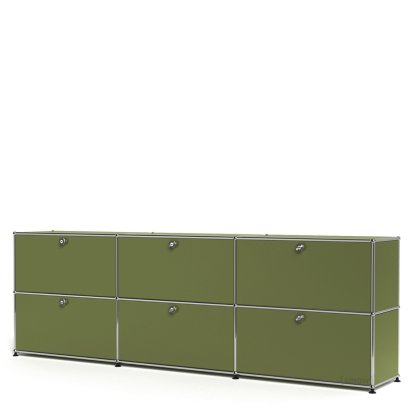 USM Haller Sideboard XL, Customisable, Olive green RAL 6003, With 3 drop-down doors, With 3 extension doors