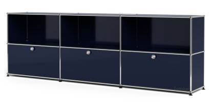 USM Haller Sideboard XL, Customisable, Steel blue RAL 5011, With 3 drop-down doors, With 3 drop-down doors