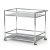 The USM Haller Bar Trolley "Schnaps" by Fritz Haller & Paul Schärer is part of the extensive product range of the Swiss manufacturer USM Haller, and like all other USM furniture is constructed for a simple modular system: chrome plated steel tubes for the structure, metal panels provide the body while chrome plated brass balls hold everything together. The USM Bar Trolley "Schnaps" features two shelves which provide ample space for glasses and bottles and which can be individually colour configured in one of the 14 standard USM colours. The frame of the USM trolley is constructed so that objects placed on the bottom shelf are stable and will not just fall out. In addition the USM Bar Trolley features a handle and comes with a choice of optionally hard or soft castors depending on your floor surface.