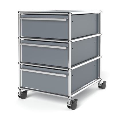 USM Haller Mobile Pedestal with 3 Drawers Type 1 (with Counterbalance), No locks, Mid grey RAL 7005