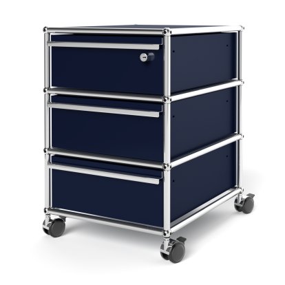 USM Haller Mobile Pedestal with 3 Drawers Type 1 (with Counterbalance), Top drawer with lock, Steel blue RAL 5011