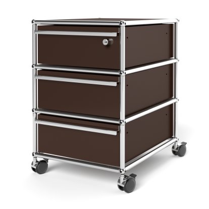 USM Haller Mobile Pedestal with 3 Drawers Type 1 (with Counterbalance), Top drawer with lock, USM brown