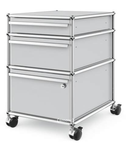 USM Haller Mobile Pedestal with 3 Drawers Type 2 (with Counterbalance), Lowest drawer with lock, USM matte silver