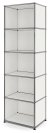 The history of the USM Haller bookcase began just as the with USM Haller sideboards and all other USM furniture in the early 1960s; and marks the evolution of the Swiss company USM in a modern industrial concern. The then owner of the company, Paul Schärer, commissioned the architect Fritz Haller with the planning and construction of new production and administration buildings. Following completion of the new buildings Fritz Haller developed in 1963 system USM Haller for the new USM office pavilion in Münsingen. Originally conceived exclusively for the company's own use, USM Haller entered series production in 1969 in the wake of a commission to furnish the Paris Rothschild Bank. The special feature of USM Haller shelves is now, as then, the modular design: from just three basic elements units can be constructed in almost every imaginable shape. In the basic structure chrome plated metal tubes are connected via chrome plated brass balls, panels of metal or glass then serve as cladding or shelves. The configurable USM Bookshelf 50 is composed of five compartments, each with a height of 35 centimetres, and is available optionally open or with two or three drop-down doors.