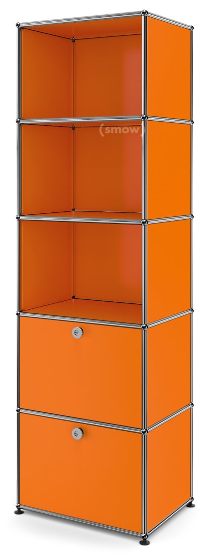 USM Haller Bookcase 50, With 2 drop-down doors, Pure orange RAL 2004