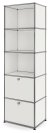The history of the USM Haller bookcase began just as the with USM Haller sideboards and all other USM furniture in the early 1960s; and marks the evolution of the Swiss company USM in a modern industrial concern. The then owner of the company, Paul Schärer, commissioned the architect Fritz Haller with the planning and construction of new production and administration buildings. Following completion of the new buildings Fritz Haller developed in 1963 system USM Haller for the new USM office pavilion in Münsingen. Originally conceived exclusively for the company's own use, USM Haller entered series production in 1969 in the wake of a commission to furnish the Paris Rothschild Bank. The special feature of USM Haller shelves is now, as then, the modular design: from just three basic elements units can be constructed in almost every imaginable shape. In the basic structure chrome plated metal tubes are connected via chrome plated brass balls, panels of metal or glass then serve as cladding or shelves. The configurable USM Bookshelf 50 is composed of five compartments, each with a height of 35 centimetres, and is available optionally open or with two or three drop-down doors.