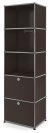 The history of the USM Haller bookcase began just as the with USM Haller sideboards and all other USM furniture in the early 1960s; and marks the evolution of the Swiss company USM in a modern industrial concern. The then owner of the company, Paul Schärer, commissioned the architect Fritz Haller with the planning and construction of new production and administration buildings. Following completion of the new buildings Fritz Haller developed in 1963 system USM Haller for the new USM office pavilion in Münsingen. Originally conceived exclusively for the company's own use, USM Haller entered series production in 1969 in the wake of a commission to furnish the Paris Rothschild Bank. The special feature of USM Haller shelves is now, as then, the modular design: from just three basic elements units can be constructed in almost every imaginable shape. In the basic structure chrome plated metal tubes are connected via chrome plated brass balls, panels of metal or glass then serve as cladding or shelves. The configurable USM Bookshelf 50 is composed of five compartments, each with a height of 35 centimetres, and is available optionally open or with two or three drop-down doors.