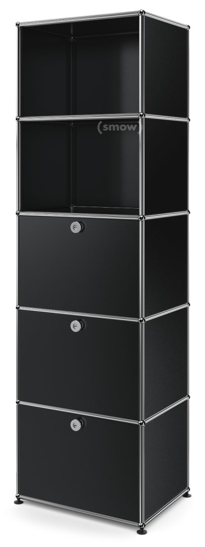 USM Haller Bookcase 50, With 3 drop-down doors, Graphite black RAL 9011