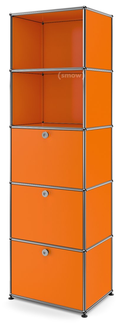 USM Haller Bookcase 50, With 3 drop-down doors, Pure orange RAL 2004