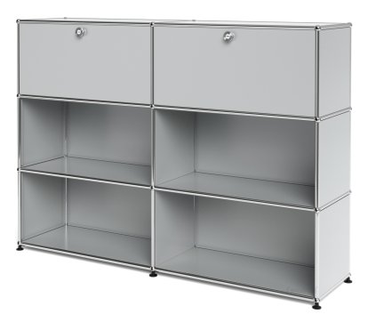 USM Haller Highboard L, Customisable Light grey RAL 7035|With 2 drop-down doors|Open|Open