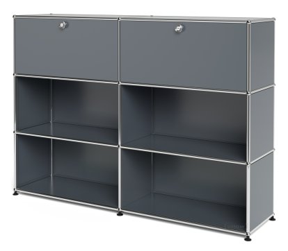 USM Haller Highboard L, Customisable, Anthracite RAL 7016, Open, With 2 drop-down doors, With 2 drop-down doors
