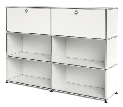 USM Haller Highboard L, Customisable, Pure white RAL 9010, Open, With 2 drop-down doors, With 2 drop-down doors