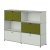 USM Haller Highboard L with two USM Haller Soft Panels, diagonal, Light grey RAL 7035, Green