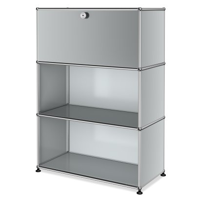 USM Haller Highboard M, Customisable Light grey RAL 7035|With drop-down door|Open|Open