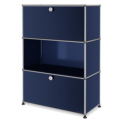 USM Haller Highboard M, Customisable, Steel blue RAL 5011, Open, With drop-down door, With drop-down door