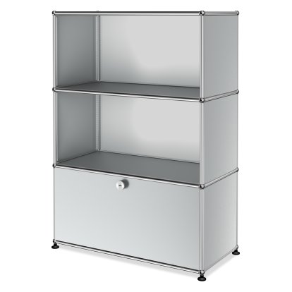USM Haller Highboard M, Customisable, USM matte silver, Open, Open, With drop-down door