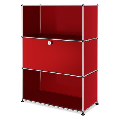USM Haller Highboard M, Customisable, USM ruby red, With drop-down door, With drop-down door, With drop-down door