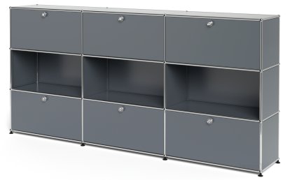 USM Haller Highboard XL, Customisable, Anthracite RAL 7016, Open, With 3 drop-down doors, With 3 drop-down doors