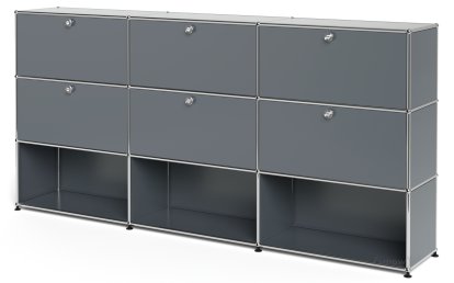 USM Haller Highboard XL, Customisable, Anthracite RAL 7016, Open, With 3 drop-down doors, With 3 drop-down doors