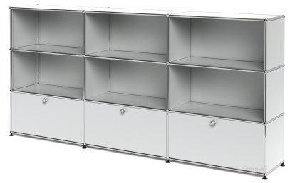 USM Haller Highboard XL, Customisable, Light grey RAL 7035, Open, With 3 drop-down doors, With 3 drop-down doors