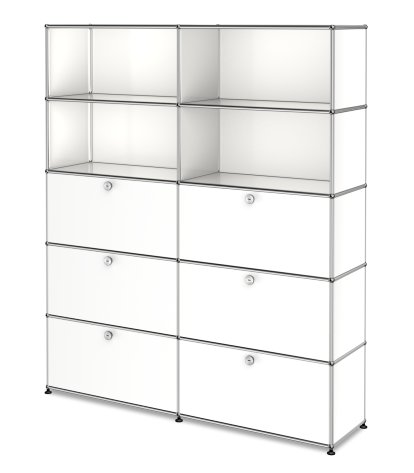 USM Haller Storage Unit L, Customisable Pure white RAL 9010|Open|With 2 drop-down doors|With 2 drop-down doors|With 2 extension doors