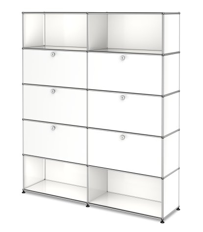 USM Haller Storage Unit L, Customisable, Pure white RAL 9010, With 2 drop-down doors, With 2 drop-down doors, With 2 drop-down doors, Open