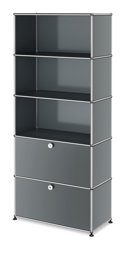 USM Haller Storage Unit M, Customisable, Anthracite RAL 7016, Open, With drop-down door, With drop-down door, Open