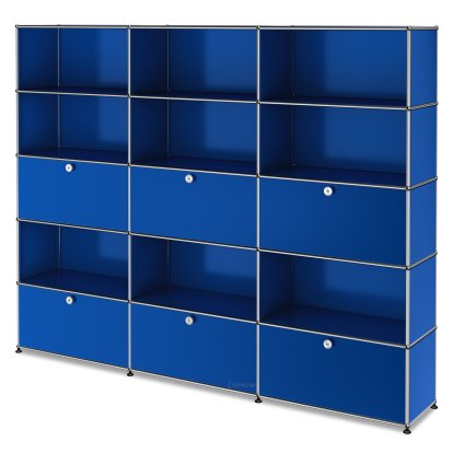 USM Haller Storage Unit XL, Customisable, Gentian blue RAL 5010, Open, With 3 drop-down doors, Open, With 3 extension doors