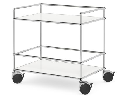 The USM Haller medical trolley is perfectly adapted for the for the mobile storage of medical accessories. Thanks to the two lockable castors and optional handles, the USM trolley by Fritz Haller and Paul Schärer is a flexible all-rounder for any modern medical practice.