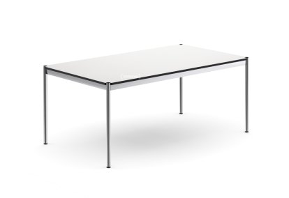 Although best known for the modular furniture system the USM Haller table is a central feature of the USM programme. The sleek chrome plated table frame beautifully reflecting the aesthetic elegance of the USM Haller units. Developed in 1963 by Swiss architect Fritz Haller, System USM Haller revolutionised office furniture of the period with its enviable ability to fit any situation and any given task: characteristics which can be be effortlessly carried over to the USM Haller table. Available in a range of lengths and depths and with a wide selection of surfaces there is a USM Haller for everyone and every occasion; and as befits a component of a modular system not only can every USM Haller table be complemented by a range of accessories but also used in varying functions, be it as dining table, conference table or desk.