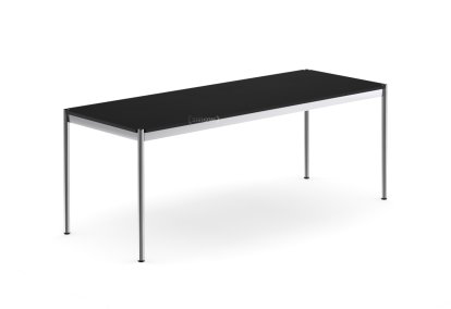 Although best known for the modular furniture system the USM Haller table is a central feature of the USM programme. The sleek chrome plated table frame beautifully reflecting the aesthetic elegance of the USM Haller units. Developed in 1963 by Swiss architect Fritz Haller, System USM Haller revolutionised office furniture of the period with its enviable ability to fit any situation and any given task: characteristics which can be be effortlessly carried over to the USM Haller table. Available in a range of lengths and depths and with a wide selection of surfaces there is a USM Haller for everyone and every occasion; and as befits a component of a modular system not only can every USM Haller table be complemented by a range of accessories but also used in varying functions, be it as dining table, conference table or desk.