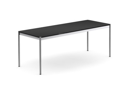 Although best known for the modular furniture system the USM Haller table is a central feature of the USM programme. The sleek chrome plated table frame beautifully reflecting the aesthetic elegance of the USM Haller units. Developed in 1963 by Swiss architect Fritz Haller, System USM Haller revolutionised office furniture of the period with its enviable ability to fit any situation and any given task: characteristics which can be be effortlessly carried over to the USM Haller table. Available in a range of lengths and depths and with a wide selection of surfaces there is a USM Haller for everyone and every occasion; and as befits a component of a modular system not only can every USM Haller table be complemented by a range of accessories but also used in varying functions, be it as dining table, conference table or desk.