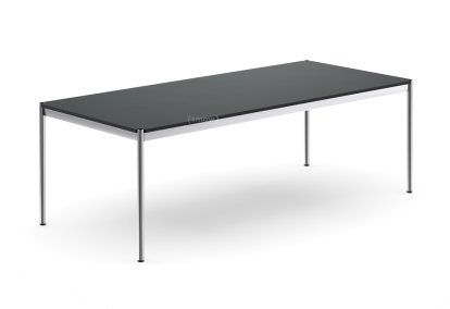Although best known for the modular furniture system the USM Haller table is a central feature of the USM programme. The sleek chrome plated table frame beautifully reflecting the aesthetic elegance of the USM Haller units. Developed in 1963 by Swiss architect Fritz Haller, System USM Haller revolutionised office furniture of the period with its enviable ability to fit any situation and any given task: characteristics which can be be effortlessly carried over to the USM Haller table. Available in a range of lengths and depths and with a wide selection of surfaces there is a USM Haller for everyone and every occasion; and as befits a component of a modular system not only can every USM Haller table be complemented by a range of accessories but also used in varying functions, be it as dining table, conference table or desk.