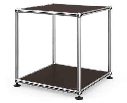 USM Haller Side Table 35, Upper panel glass, lower panel metal, USM brown