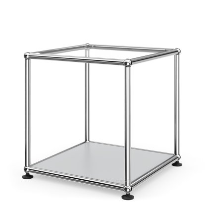 USM Haller Side Table 35 Upper panel glass, lower panel metal|Light grey RAL 7035
