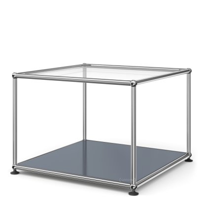 USM Haller Side Table 50, Upper panel glass, lower panel metal, Mid grey RAL 7005